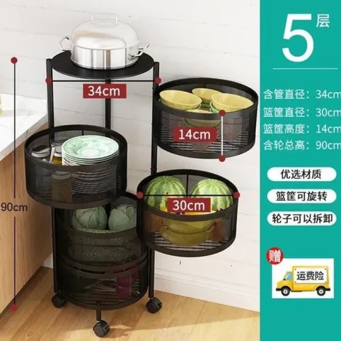 5 Layer (Round) Full Metal Fruit/Vegetable Rack(Black)